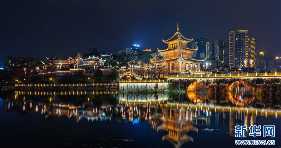 贵阳市甲秀楼夜景。