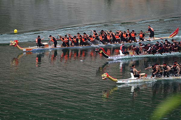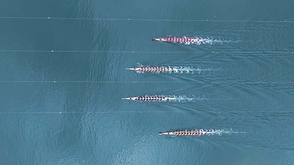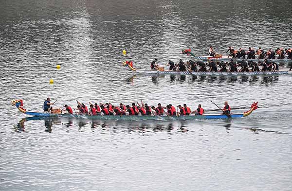 上午9时10分,口令哨音划破湖面,龙舟如离弦之箭破水疾驰。参赛队员紧跟鼓手敲鼓节奏,整齐划一,湖面化作龙舟竞发的竞技场。比赛过程中,各支队伍展现了顽强的拼搏精神和高超的竞技水平。其中牛郎镇松江、矮红两村联队夺冠呼声最高,他们比赛的同时还与观众互动,以龙舟精神感染观众。