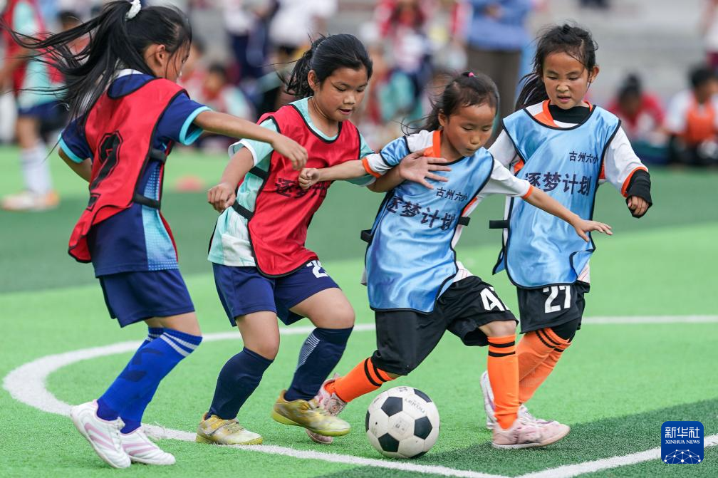 4月25日,在贵州省榕江县古州镇第六小学,学生们在“班超”足球赛中拼抢。2024年以来,榕江全县乡镇及以上中小学陆续开展了借鉴“村超”文体融合模式的“班超”足球赛,这一创举有效保持和增强了“村超”活力。新华社发(王炳真摄)