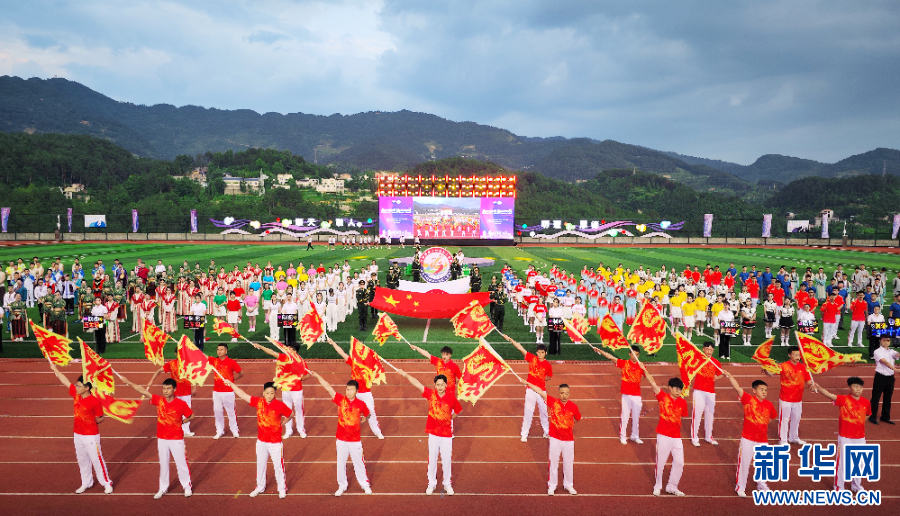 6月11日,茅台职工运动会代表队入场仪式。新华网 卢志佳 摄