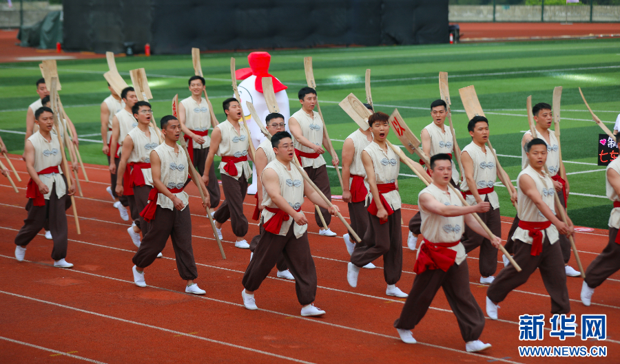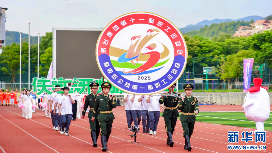 6月11日,茅台职工运动会会徽入场。新华网 卢志佳 摄