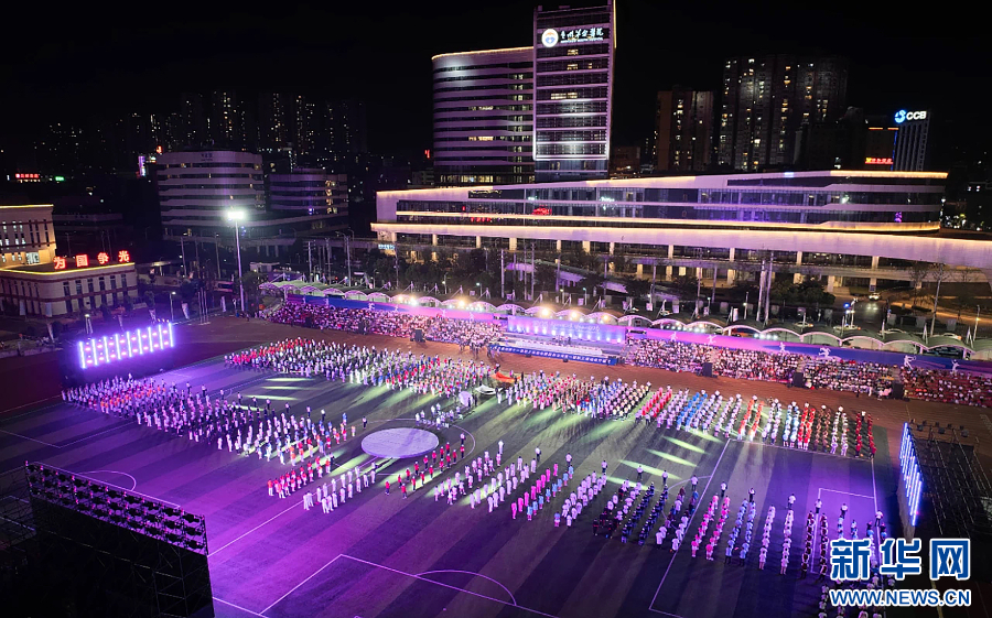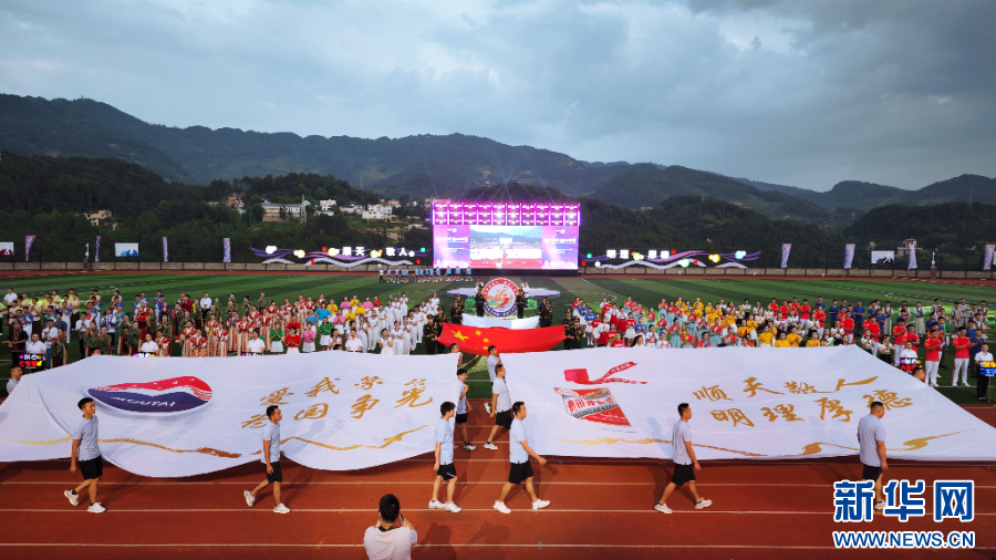 6月11日,航拍茅台职工运动会开幕式现场。新华网 卢志佳 摄
