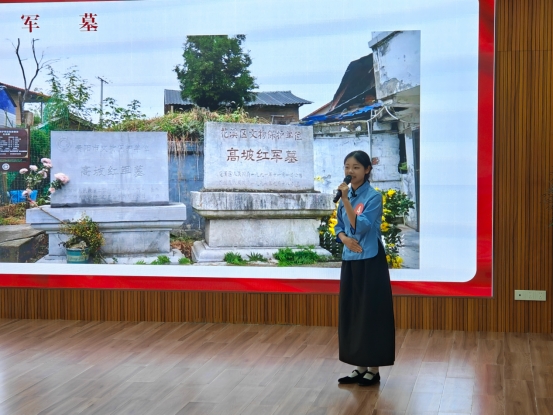 在活动现场,选手们围绕高坡红军标语、高坡乡红军居住地、拥军坟、六方井等花溪区红色地标,以稚嫩却坚定的声音重现烽火岁月的感人故事,配合身后大屏播放精心制作的PPT与视频,将历史事件、英烈事迹娓娓道来。