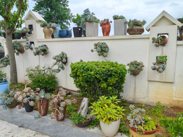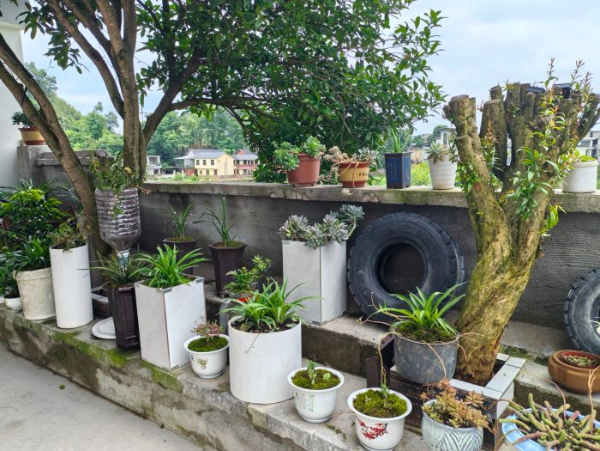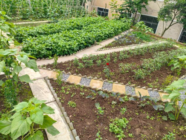 建设民宿的同时,王丽还将庭院进行改造,配套鱼池,摆上各类花卉;将院墙外撂荒的庄稼地铲除杂草、进行平整,用砖瓦与混凝土砌成一个个“迷你”菜园和造型精美的花园,让普通庄稼地“脱胎换骨”成观光休闲的农耕体验园。