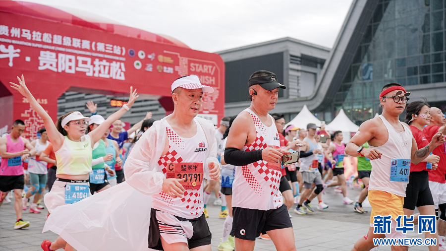 新华网贵阳6月15日电(卢志佳)6月15日,2025多彩贵州马拉松超级联赛(第三站)暨蒙牛·贵阳马拉松赛鸣枪开跑。一场大雨让贵阳的气温从30多度的炎热降到20多度的凉爽,3.5万跑者在雨中挑战“贵马”。