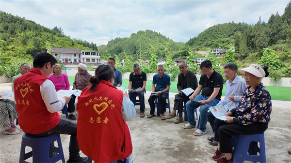 美酒河镇水务站工作人员向群众耐心讲解暴雨防范、山洪应对等知识。