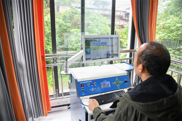 工作人员在贵阳市禾丰水文站进行数字化水文监测。