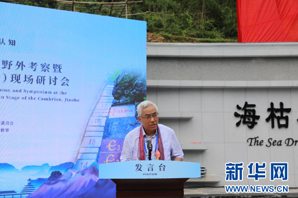 国际地层委员会副主席沈树忠院士作致辞。新华网 廖浜合 摄