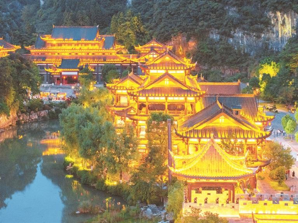毕节市织金县的平远古镇迎来最美夜旅游季。 王洋 摄