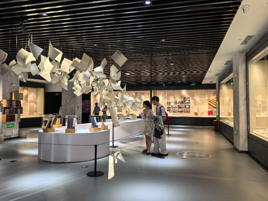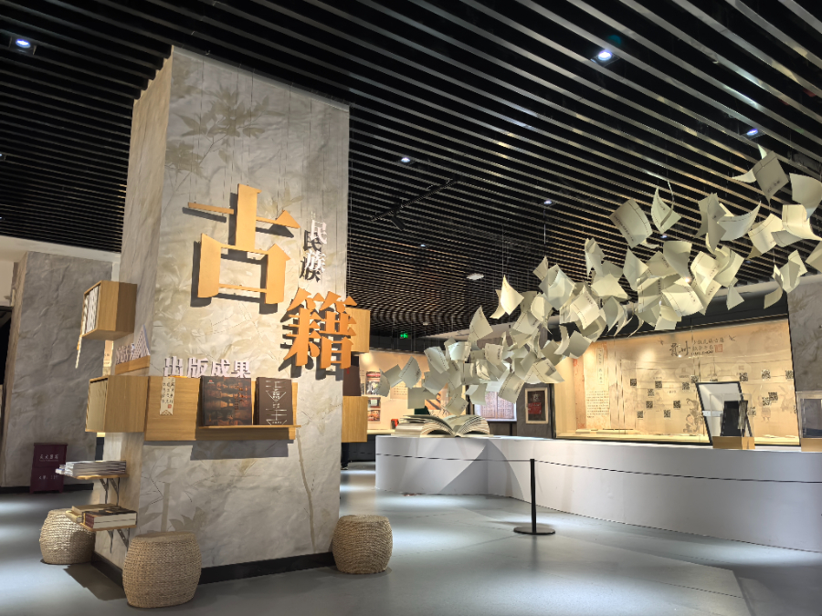 展厅中特别设置的投影放映区、阅读区、触摸屏翻阅区、古籍纸张展示区、民族祝福语印章打卡区、观展答题区等互动空间,深受年轻观众喜爱,吸引了大量观众积极参与。大家在品读典籍、欣赏文字、聆听古歌、触摸纸张、收集印章、探索答案的过程中拉近了与古籍的距离,有效地提升了全社会对民族古籍工作的关注度。