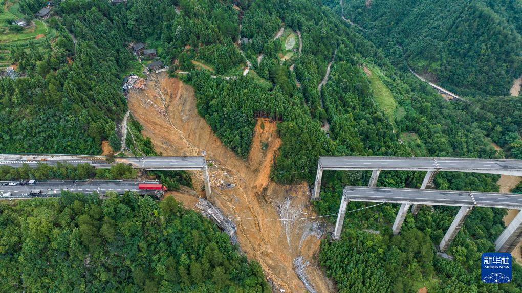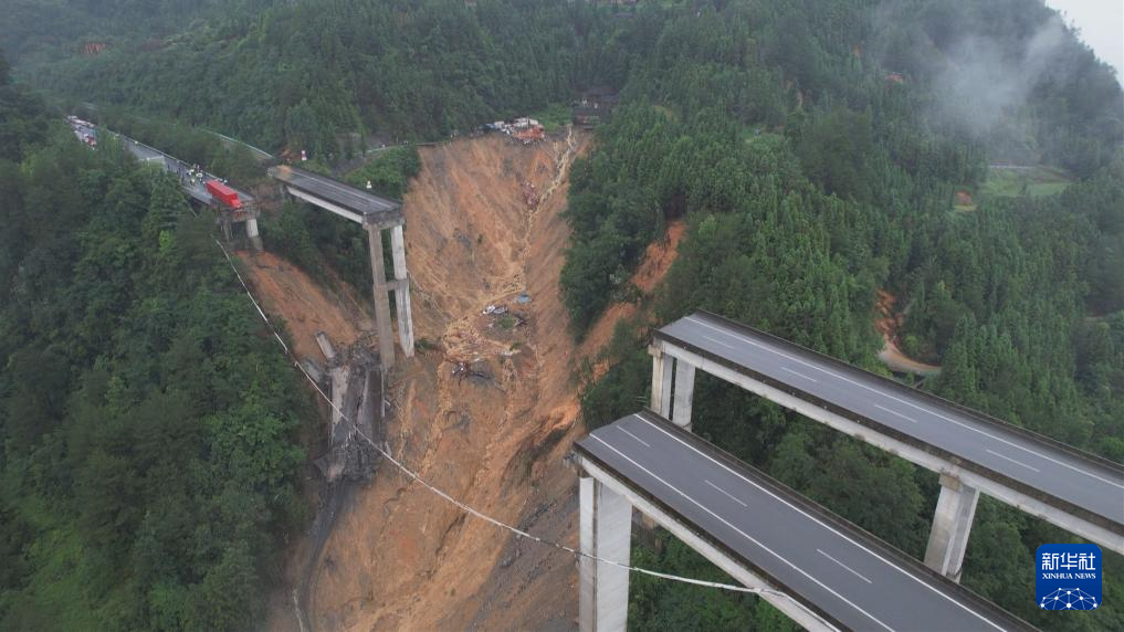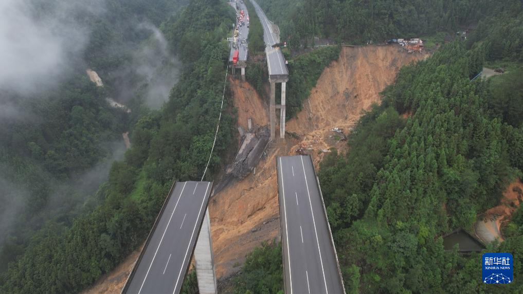 这是6月24日拍摄的垮塌后的厦蓉高速猴子河特大桥引桥(无人机照片)。新华社发(陈辰 摄)