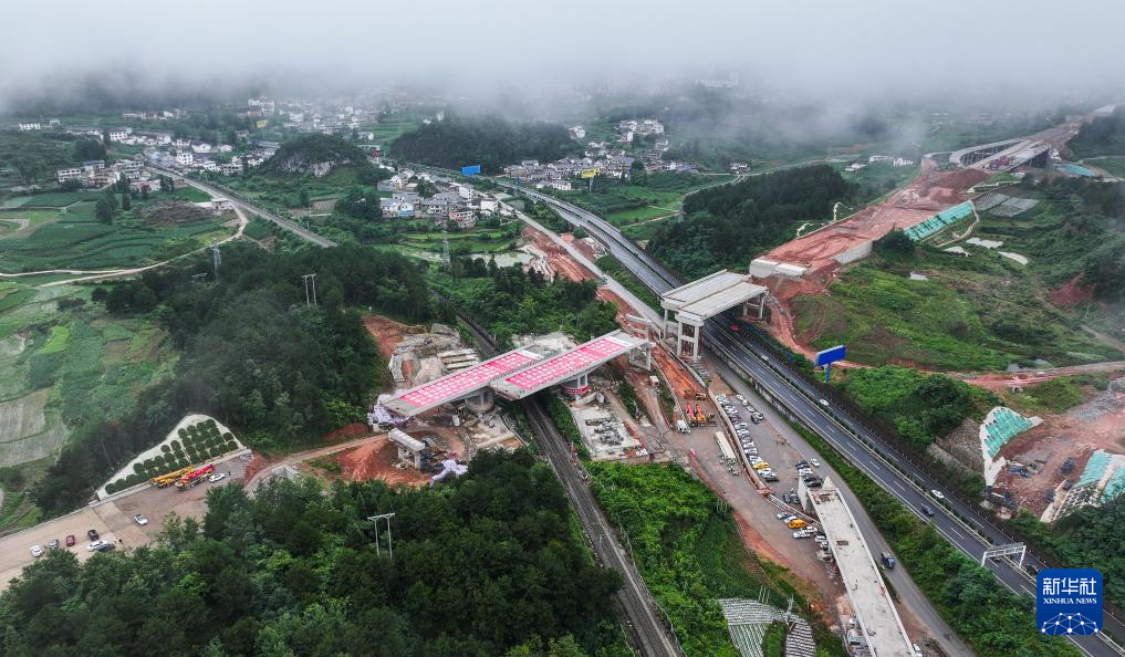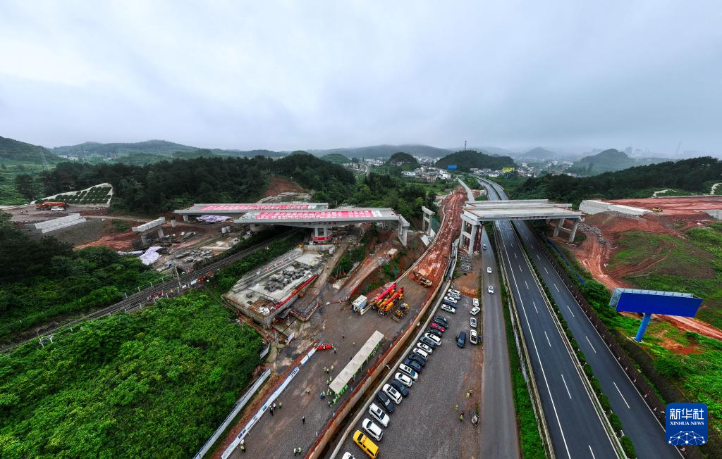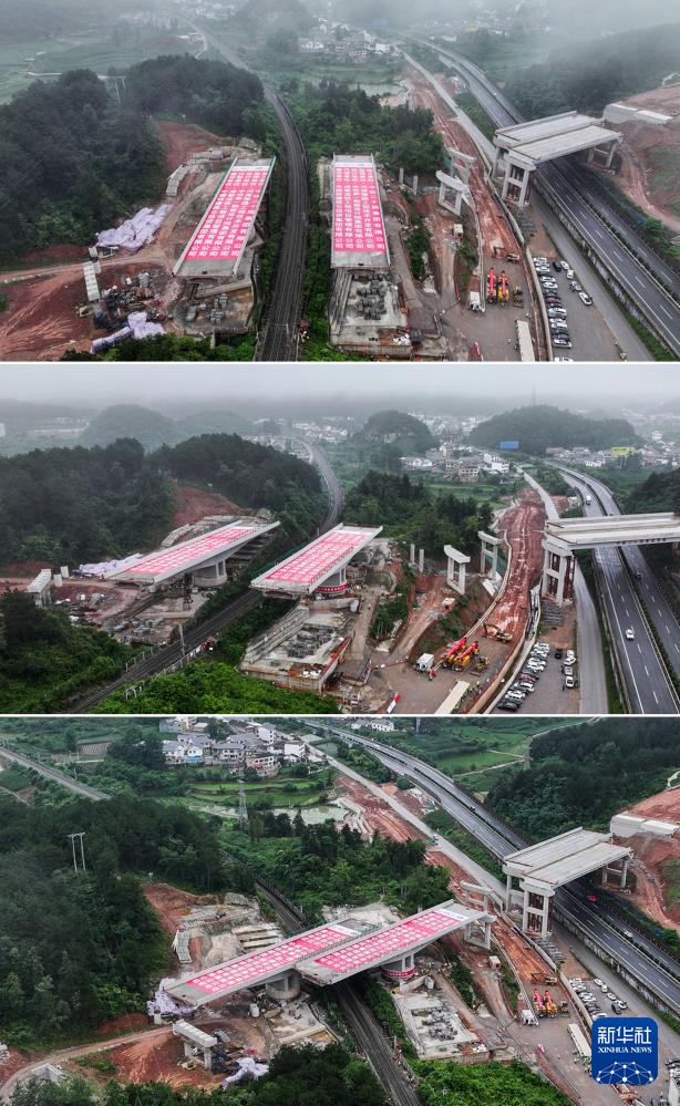 这是6月24日拍摄的贵州乌长高速公路高坝大桥转体现场(拼版照片)。新华社记者 杨文斌 摄