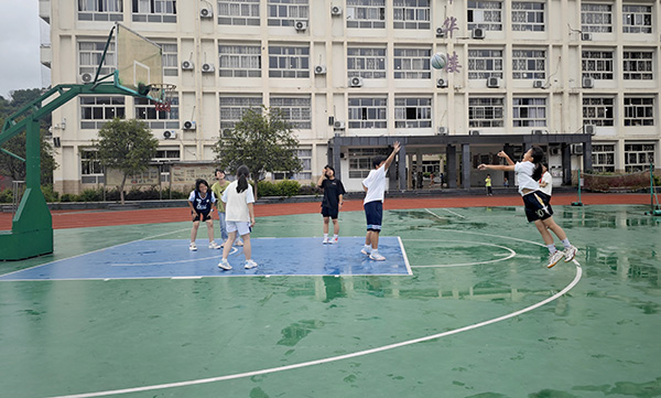 雨后,赤水市官渡小学空气格外清冽。下课铃响,篮球场上,六年级学生廖湘熠眼神如炬,正与队友默契配合,展开激烈的3v3对决。运球、突破、上篮,坚实而富有弹性的崭新地面,溅起细碎的水花。