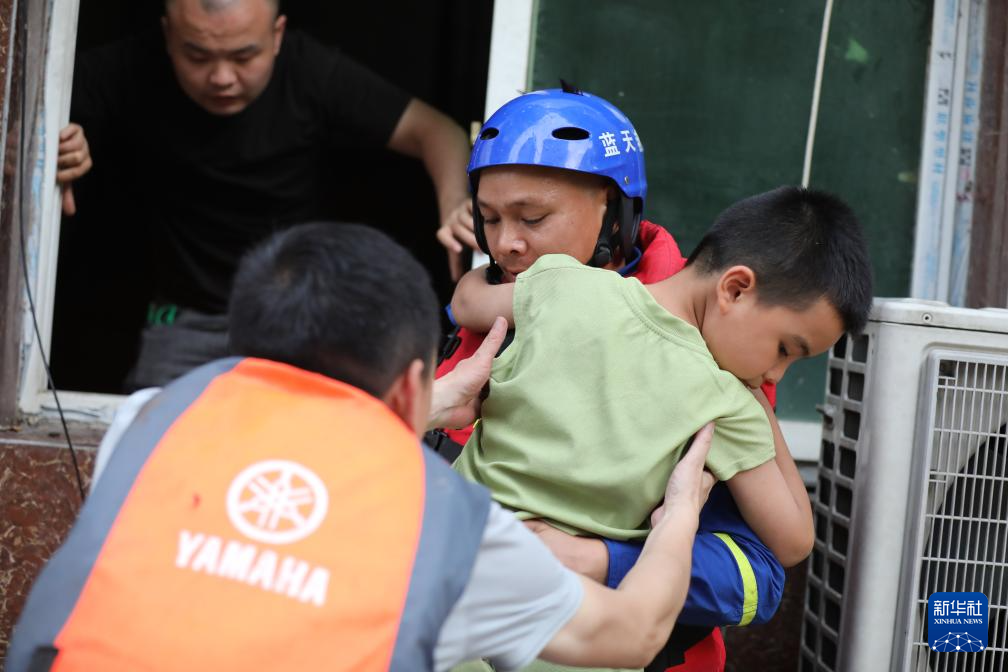 6月24日,救援人员在贵州省榕江县转移被困群众。新华社记者 胡星 摄