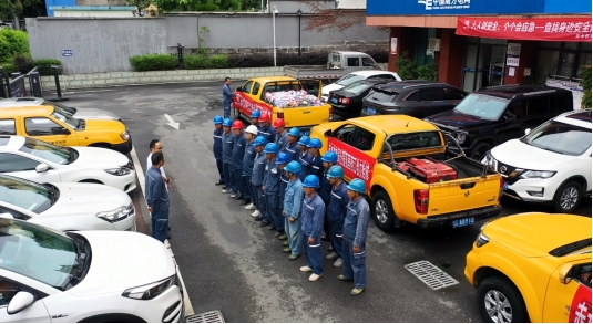南方电网贵州遵义桐梓供电局第一时间集结经验丰富的电力抢修人员,紧急组建支援队伍整装奔赴榕江,助力榕江受灾地区渡难关。(何宇 摄)