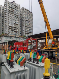 南方电网贵州遵义仁怀供电局迅速集结力量,调度应急发电车、抢修物资等,紧急驰援榕江。(杨承翰 摄)