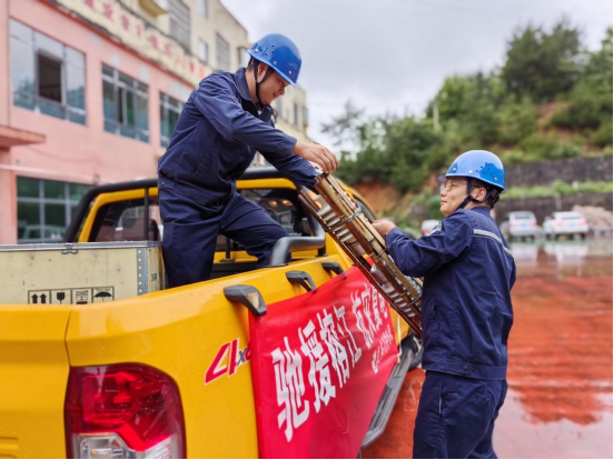 南方电网贵州遵义湄潭供电局组织党员突击队和青年突击队,携带抢修设备和物资紧急驰援榕江县,参与抗洪保电工作。(杨彬彬 摄)