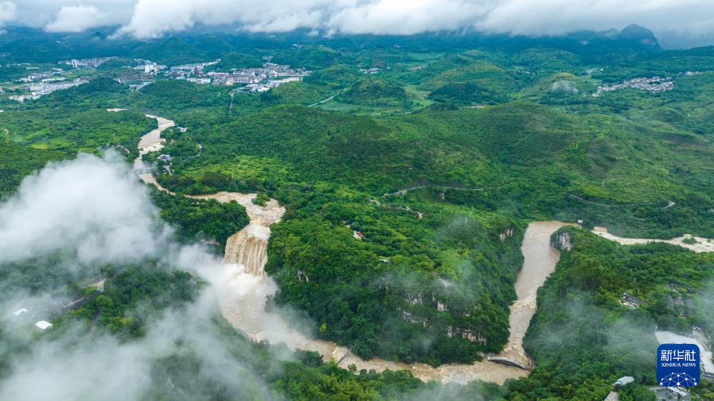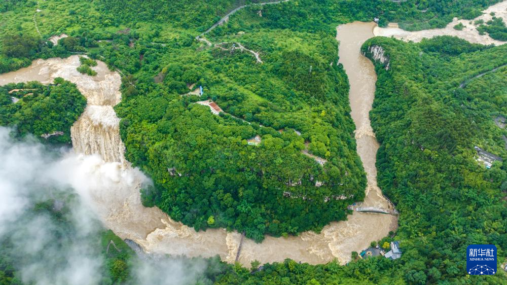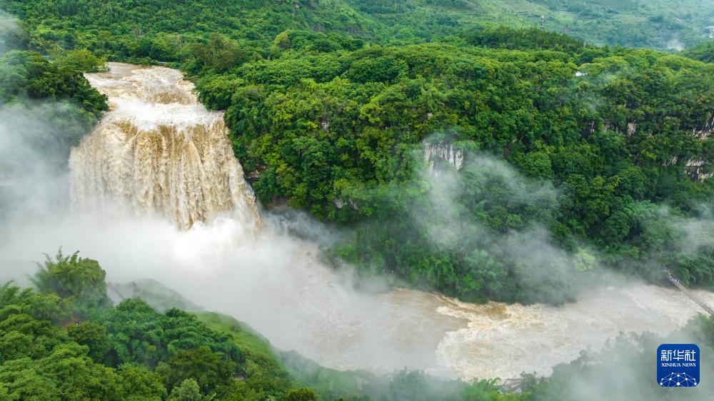 这是6月26日拍摄的贵州黄果树瀑布(无人机照片)。新华社发(陈熙摄)