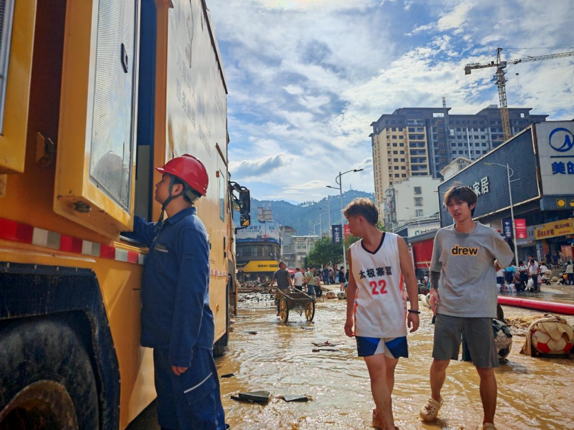 抢险队伍第一时间开展清淤工作,为后续抢修复电筑牢基础。杨承翰 摄