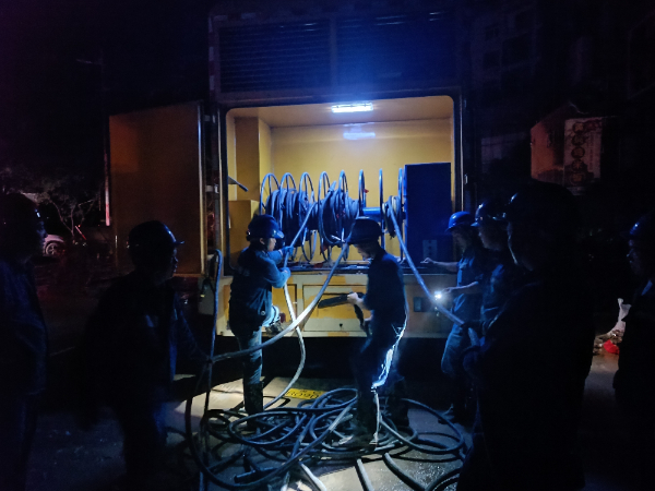 抢险现场,遵义供电局现场指挥部迅速梳理受灾形势,精准制定应急抢修方案,并第一时间派出4辆应急发电车为锦州新城小区住户的基础生活用电提供临时供电保障。6月26日凌晨1时18分,随着应急发电车部署完毕,合闸操作顺利完成,发电车开足马力,将源源不断的电能输送至居民楼,保障了锦州新城小区4个单元楼、1000余户居民基础生活用电,直至后续抢修工作全面完成,恢复正常供电。