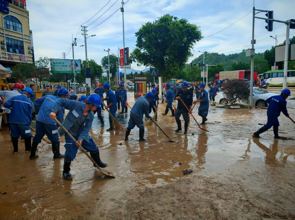 6月25日16时许,遵义供电局抢险队伍全部抵达灾区。在现场统一指挥调度下,抢险队员们顾不上片刻休息,立即投入通道清淤工作,为后续抢修复电筑牢基础。