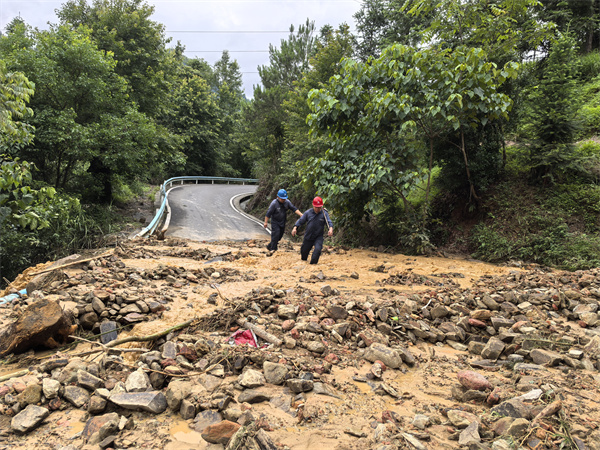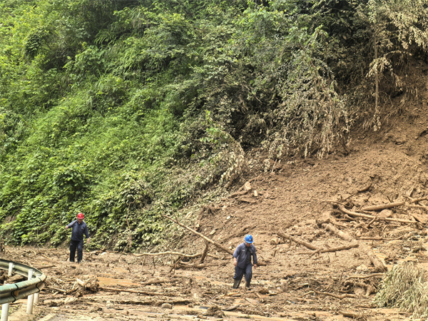 泥石流撕碎的道路上,齐膝深的泥浆洪流横亘眼前。“踩实了,大家注意安全,前后提醒一下!”付国沙的吼声穿透雨幕,四人用木棒结成生命链条,像穿越雷区般在洪流中艰难挪移。