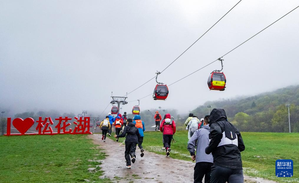 5月1日,运动爱好者在吉林市松花湖度假区参加越野跑。新华社记者颜麟蕴 摄