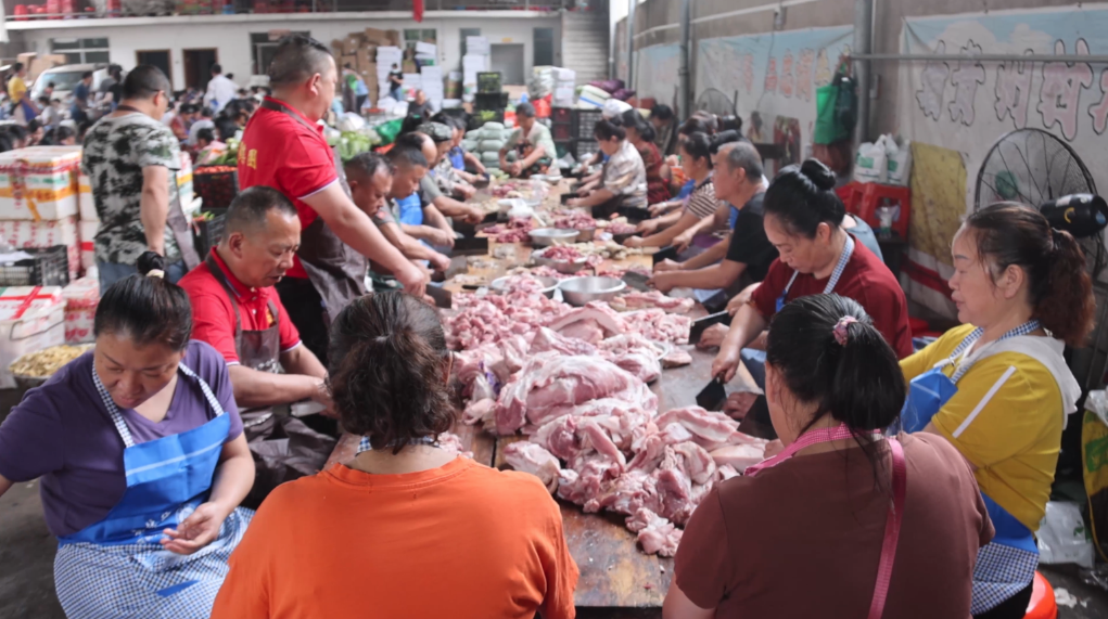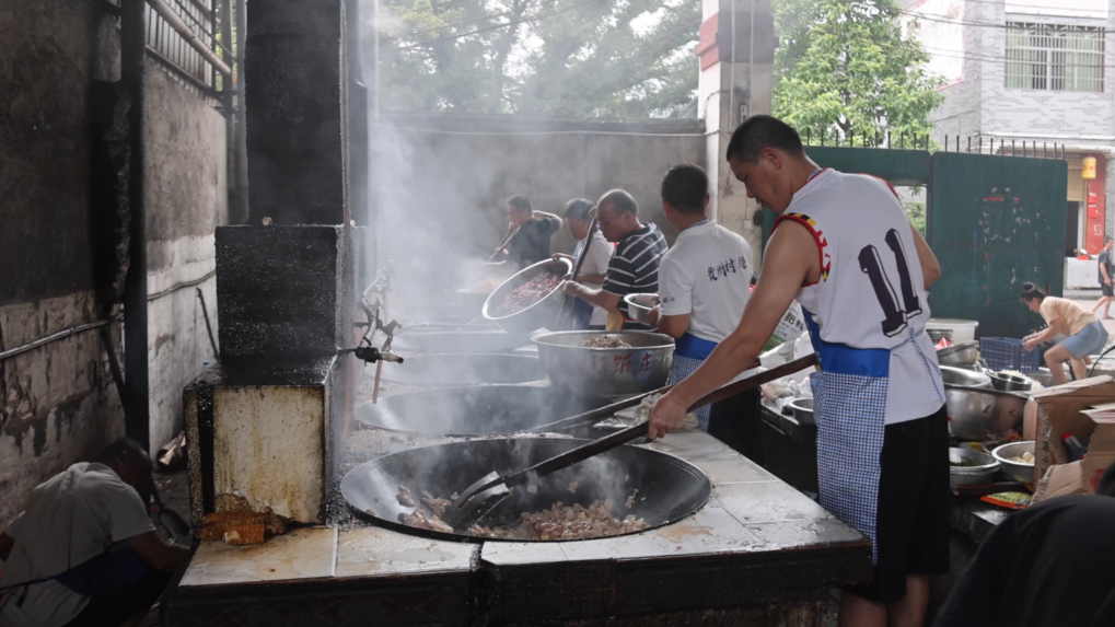 新华社记者来到榕江县忠诚镇忠诚村,在一处后勤伙食保障点看到许多村民正在洗菜、切菜、炒菜、打包,场面热火朝天。