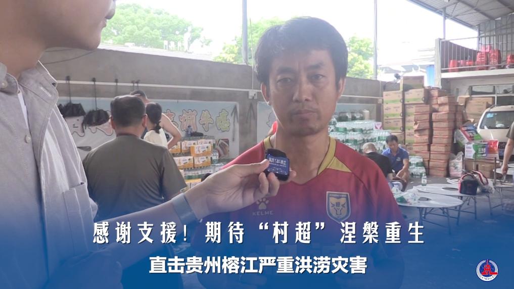 榕江县忠诚镇党委书记杨胜涛动容发言,“感谢支援!相信‘村超’涅槃重生!”