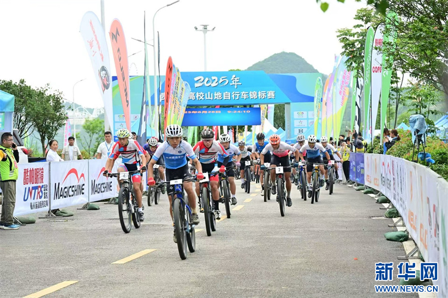 新华网贵阳6月29日电(卢志佳)2025年贵州省高校山地自行车锦标赛6月28日在贵州工业职业技术学院(清镇校区)举行。贵州省内22所高校的数百名自行车选手在青山绿水间展开速度与耐力的激烈比拼。