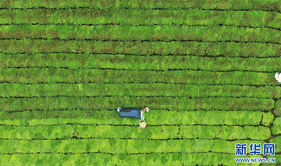 仲夏时节,位于贵州省铜仁市松桃苗族自治县普觉镇的万亩茶园绿意盎然,风景如画。茶农们穿行在茶树间,忙着采收茶叶,赶制夏茶。