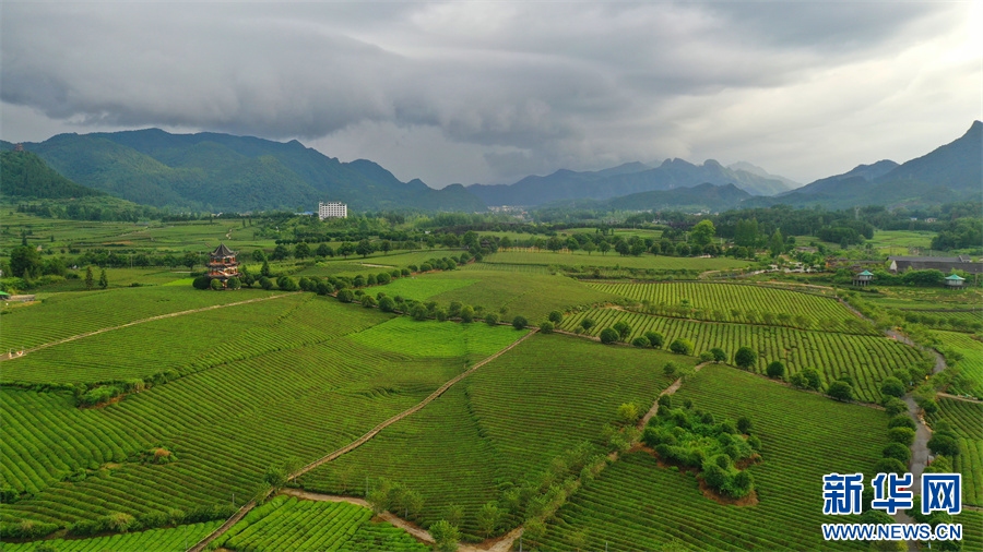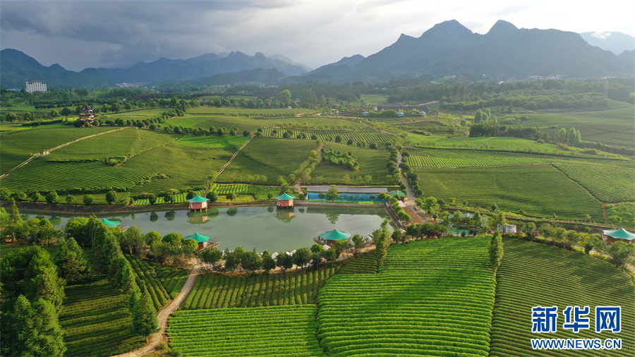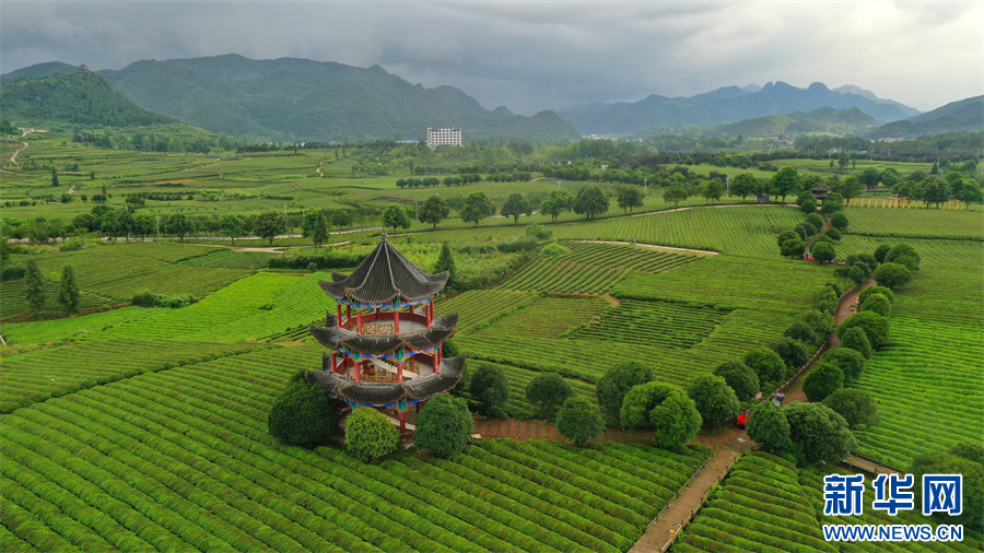 6月28日,航拍贵州省铜仁市松桃县普觉镇的夏日茶园风光。新华网 卢志佳 摄