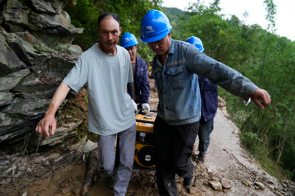 “熄火,所有人下车,推。”三都供电局总经理郭敏用沙哑的声音喊道。没有半分犹豫, 十几名身着早已湿透、沾满泥浆衣服的抢险队员,跃入泥潭中。