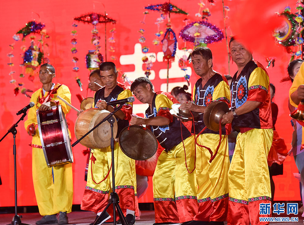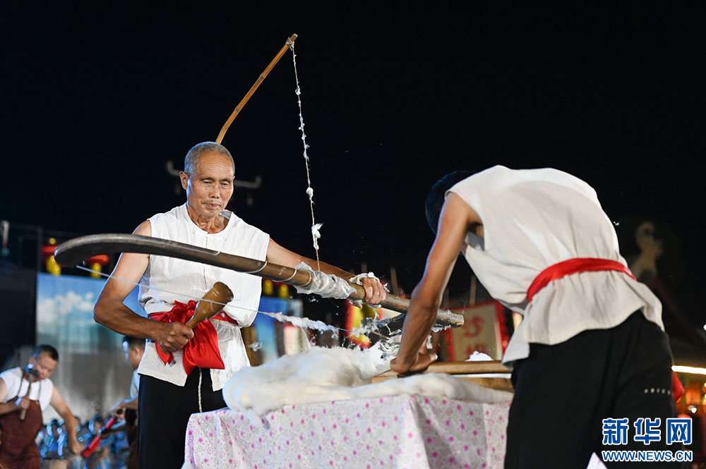 图为6月14日“松桃村晚”现场表演弹棉花。新华网发(谢慧芳 摄)