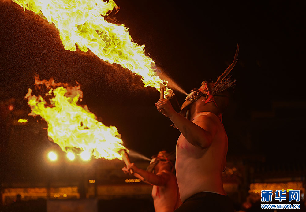 图为6月14日“松桃村晚”现场表演喷火。新华网发(谢慧芳 摄)