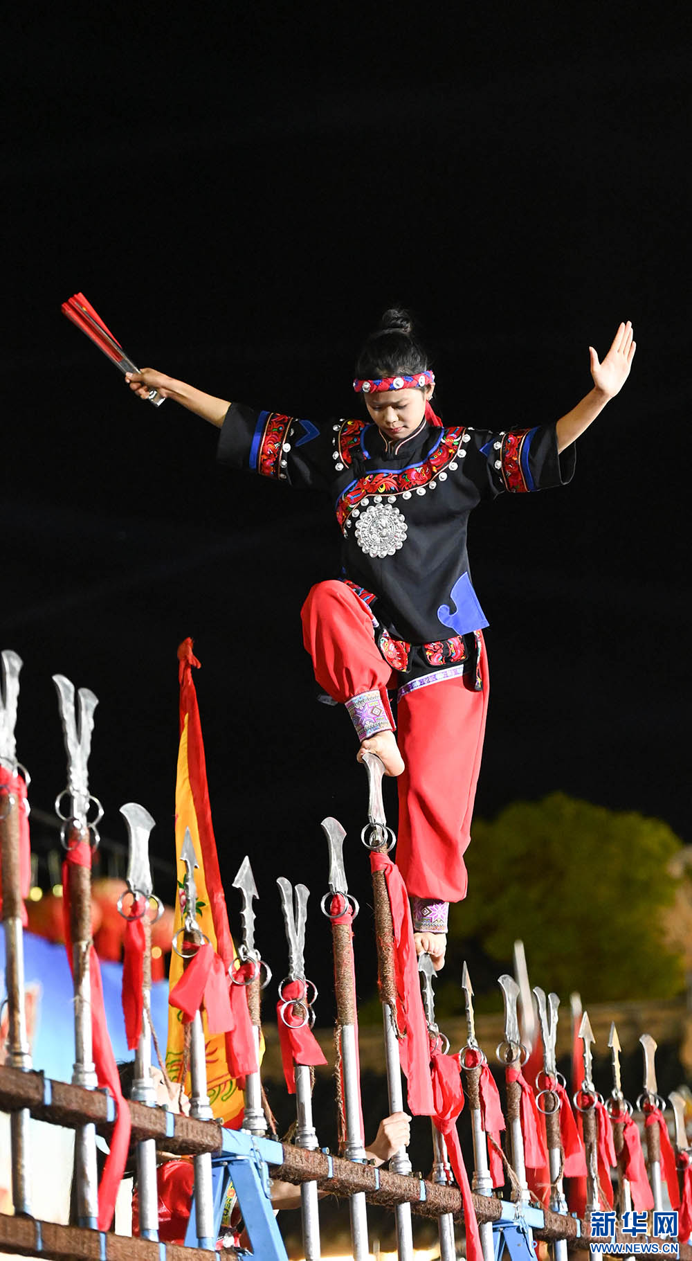 图为6月14日“松桃村晚”现场表演上刀山。(谢慧芳 摄)