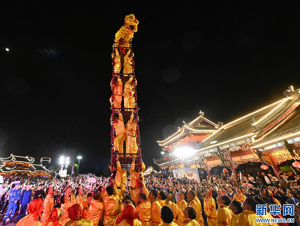 图为5月10日“松桃村晚”现场表演高台舞狮。(谢慧芳 摄)