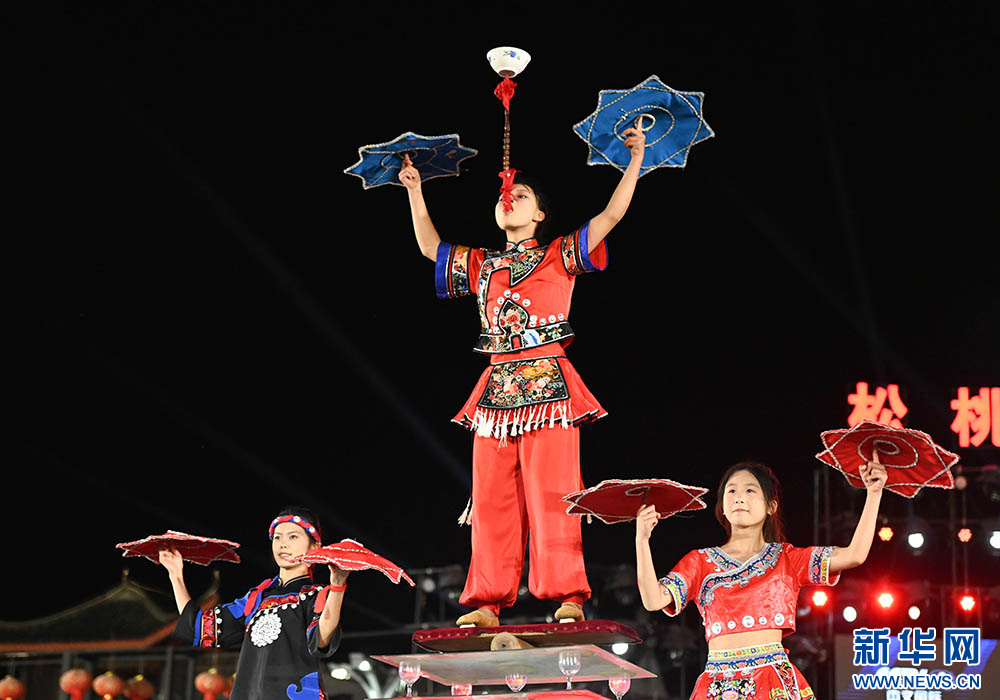 图为5月10日“松桃村晚”现场表演绝技绝艺。新华网发(谢慧芳 摄)