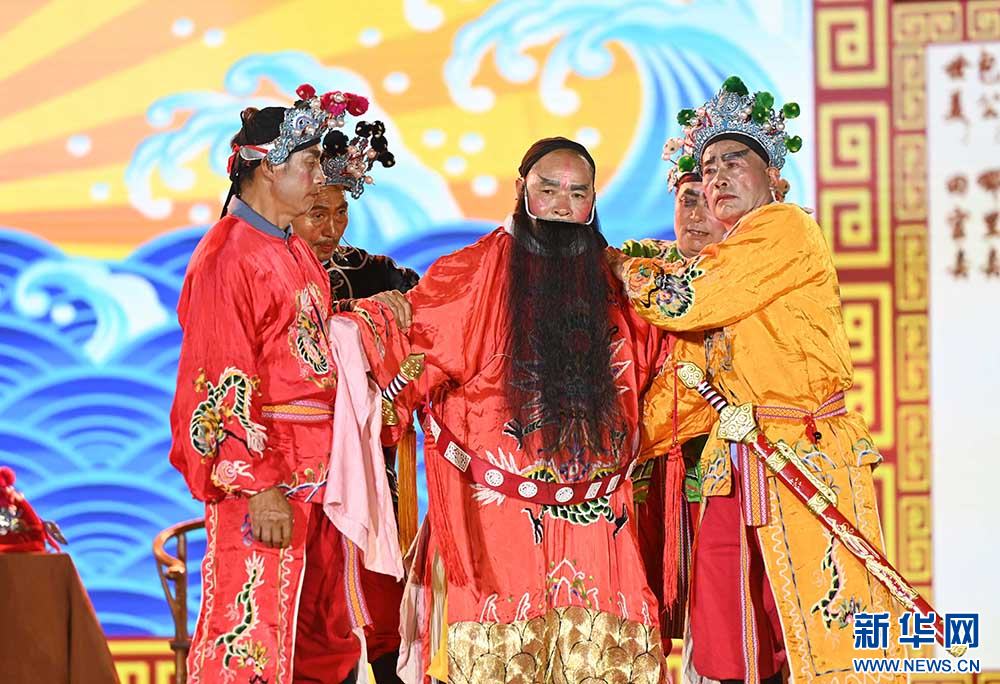 图为6月14日“松桃村晚”现场表演立新房。新华网发(谢慧芳 摄)
