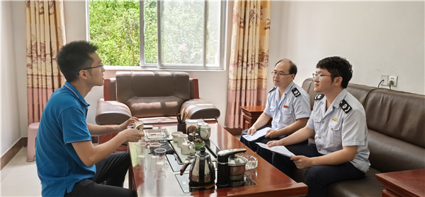 从江县税务局团支部书记张定兴与同事一道赶往受灾企业做涉税报损辅导