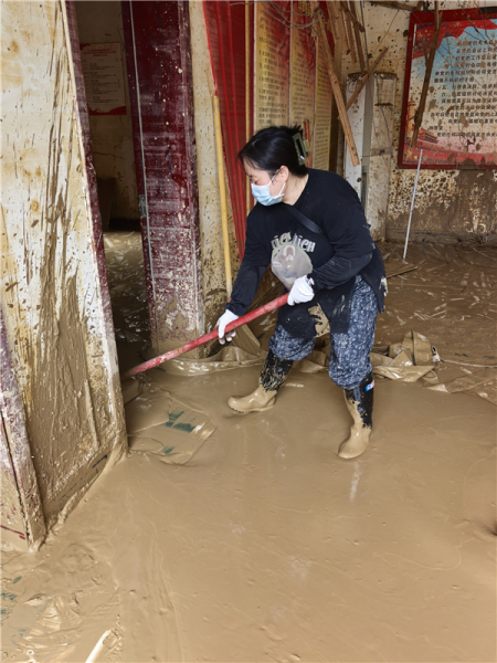 陆凯连提前结束产假,迅速投入县局灾后清淤工作