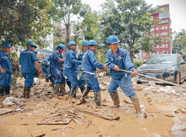 “现在积水退去了,今天的任务是为滨江一号小区重新安装1600千伏安变压器。我们要发挥党员突击队的先锋模范作用,一定克服重重困难,尽快为居民送上‘清凉电’!”召开班前会时,吴兵强调。
