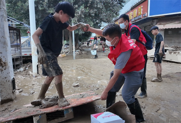 徐勇哽咽道:“洪水冲垮了货架,但冲不垮人心。看见这抹红色,就像看见了主心骨!”