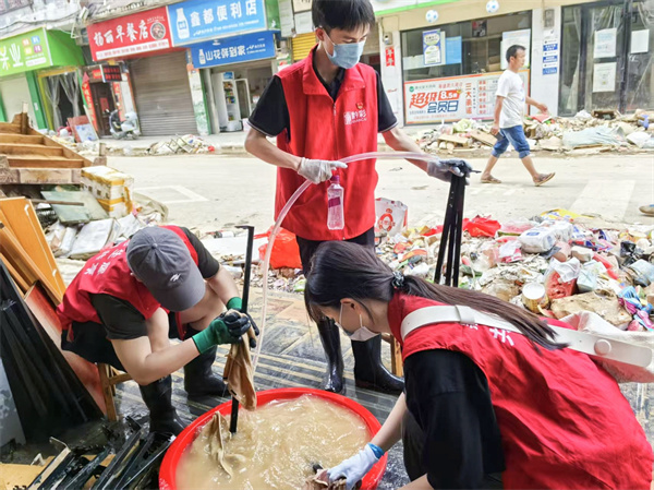 应急服务队为客户清洗店面。(杨思琦 摄)