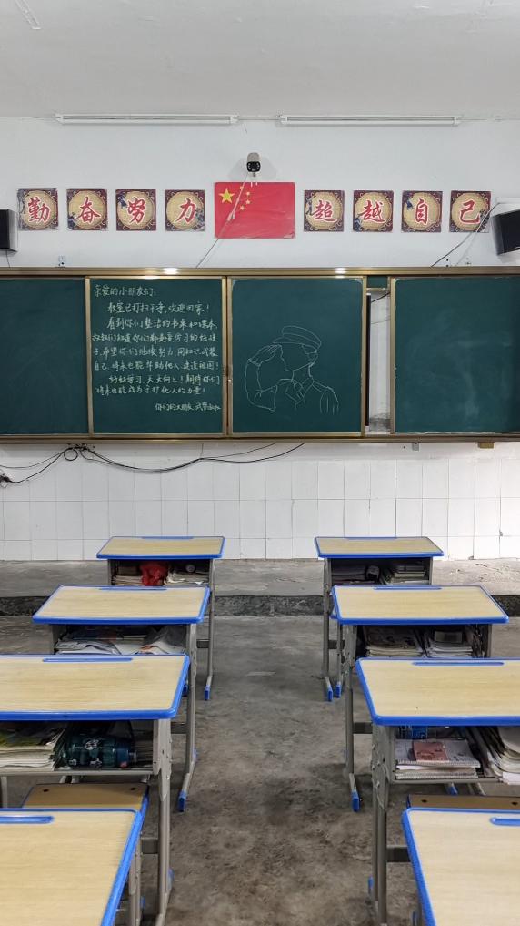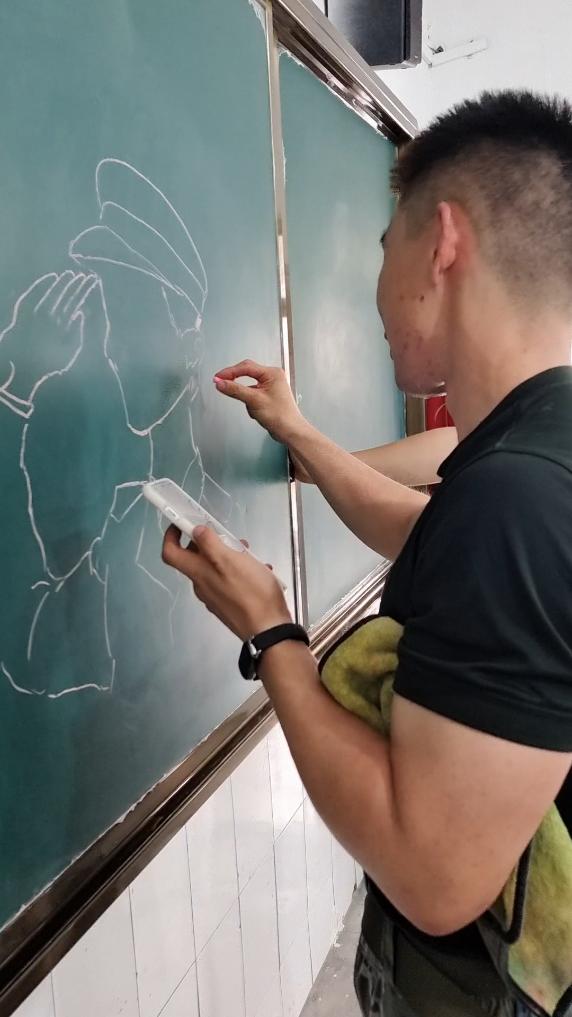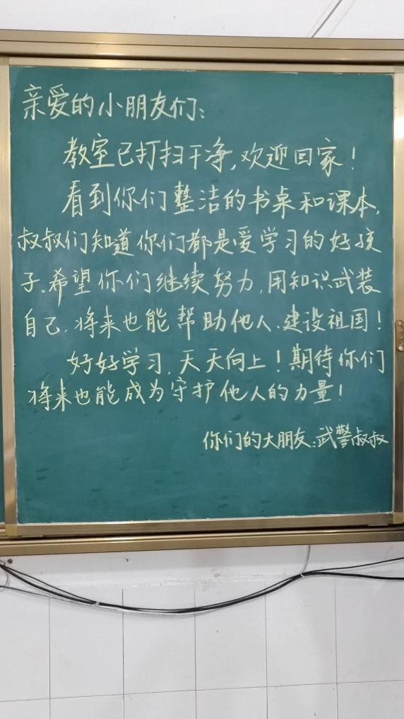 这是武警官兵在贵州省三都县都江镇打鱼民族学校黑板上