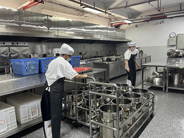 “我们每天都是三菜一汤,而且每天都不重样,瓜果蔬菜都很新鲜,量大管饱,吃得好,像在家里一样感觉到满满的幸福。”