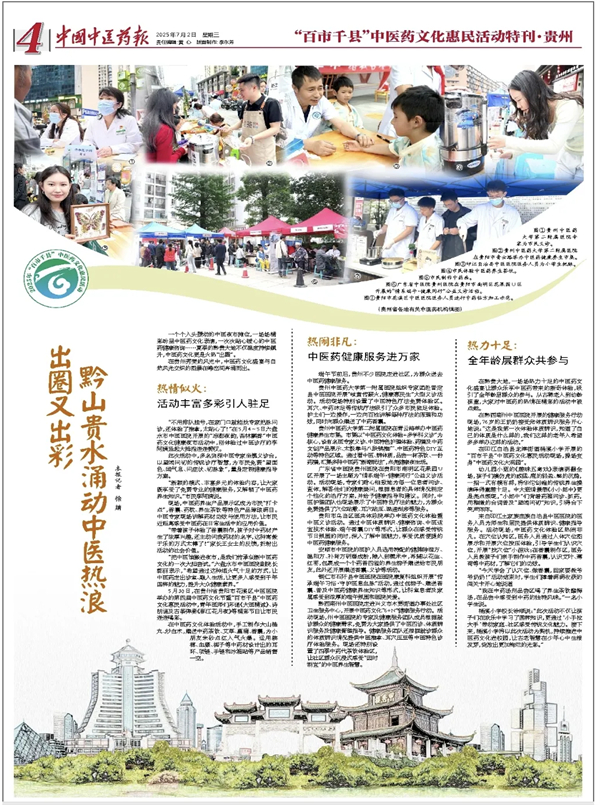在黔贵大地,一场场热力十足的中医药文化盛宴让群众乐享中医药带来的新奇体验,吸引了全年龄层群众的参与。从古稀老人到幼龄孩童,大家对中医药的热情在精彩的活动中被点燃。