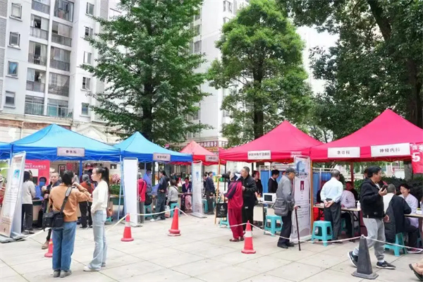 贵州中医药大学第二附属医院在青云路举办中医药健康养生市集。市集以“中医药文化体验+多学科义诊”为核心,设有名医专家义诊、中医特色护理体验、药膳及中药文创产品展示、太极拳与八段锦推广、中医药特色DIY互动等特色区域。通过看中医、辨体质,品尝一杯茶饮、一份药膳,汇集多种中医药“新潮玩法”,点亮健康夜生活。
