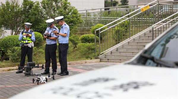“该路段禁止停放车辆,请停放路边车辆立即驶离,否则将违停取证……”7月1日,在贵阳市兴筑路与诚信南路交叉口,一架搭载高清摄像头和扩音设备的无人机正在低空盘旋,通过交警后台操控,无人机可精准识别违停车辆及未佩戴头盔的电动车骑行者,并第一时间发出语音警示。