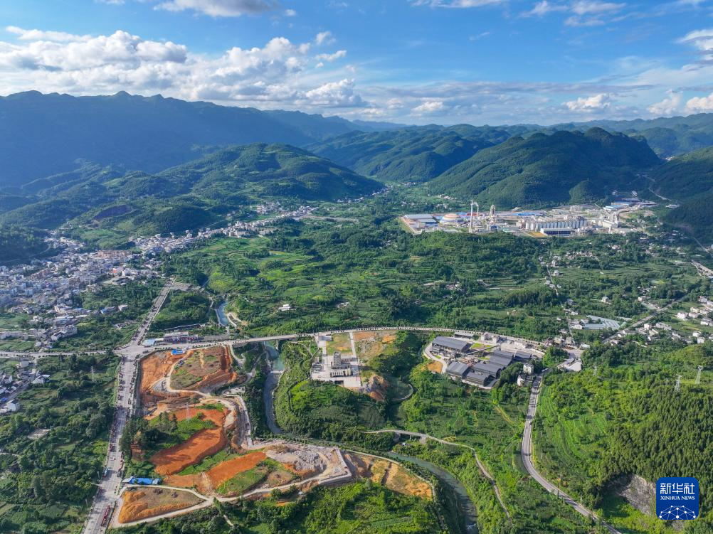 这是2025年7月2日拍摄的建设中的贵州省遵义市务川仡佬族苗族自治县氟钡新材料产业园(无人机照片)。新华社发(袁福洪 摄)